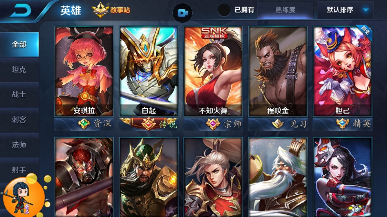 废话不多说,上图中,小编专门找了自己的小号,写文字标注了各种不同熟练度代表的图标。从中可以看出。程咬金的图标是暗淡的中间没有珠宝,这个是见习!安琪拉中间是绿色的珠宝,这个是资深!妲己的话是蓝色的珠宝,这个代表精英!不知火舞中间是粉色的珠宝,代表着宗师!最后白起是满级熟练度,中间是大红色的珠宝,代表着传说!