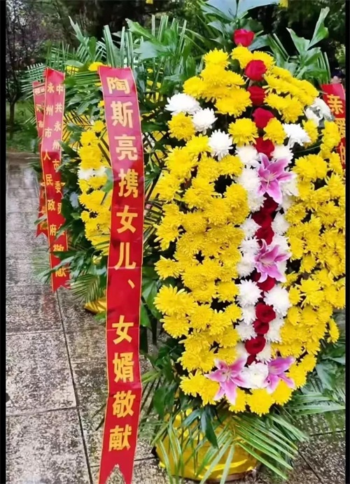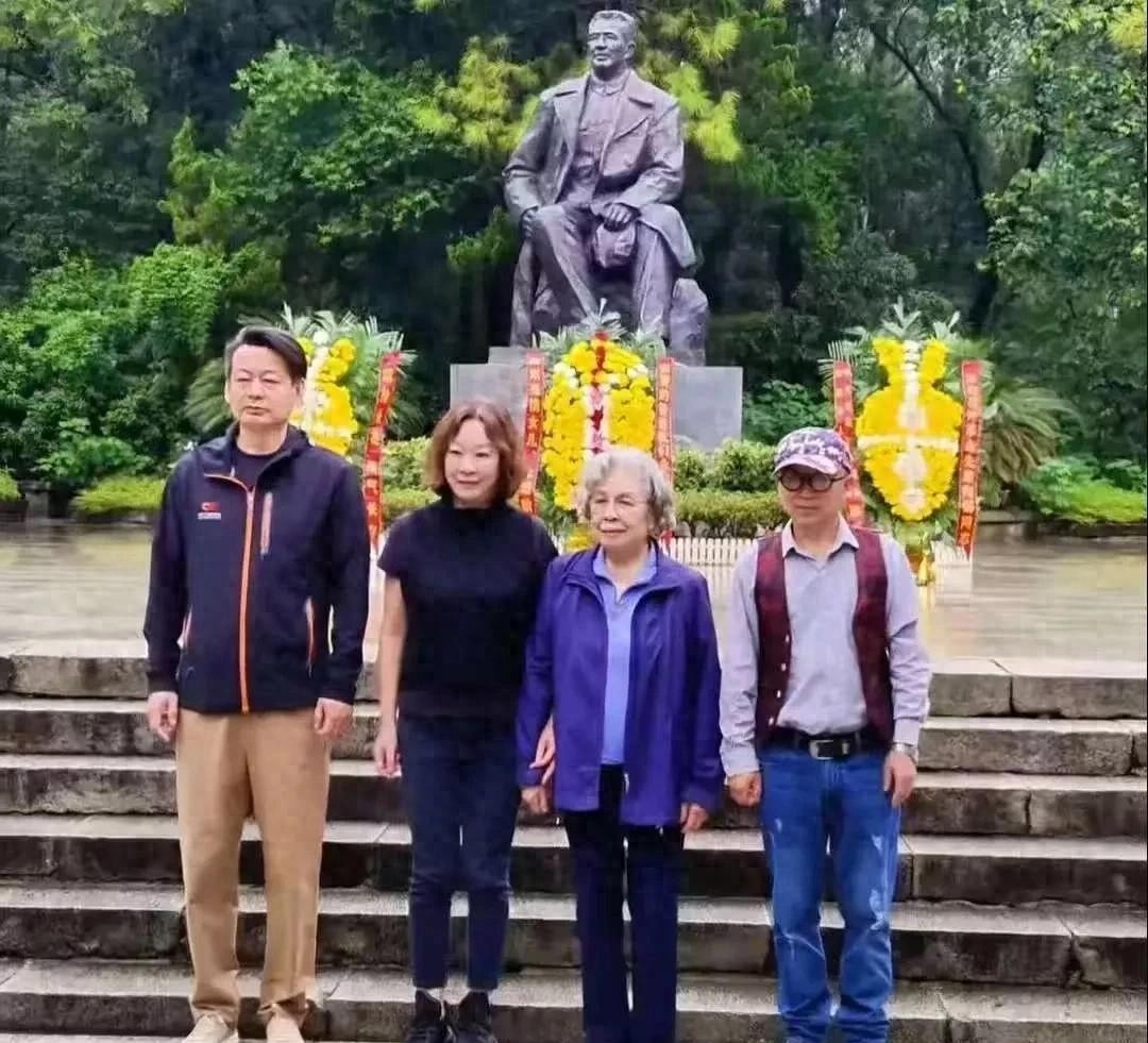 2024年,陶斯亮和女儿、女婿回湖南祭拜父亲陶铸,一张珍贵的合影