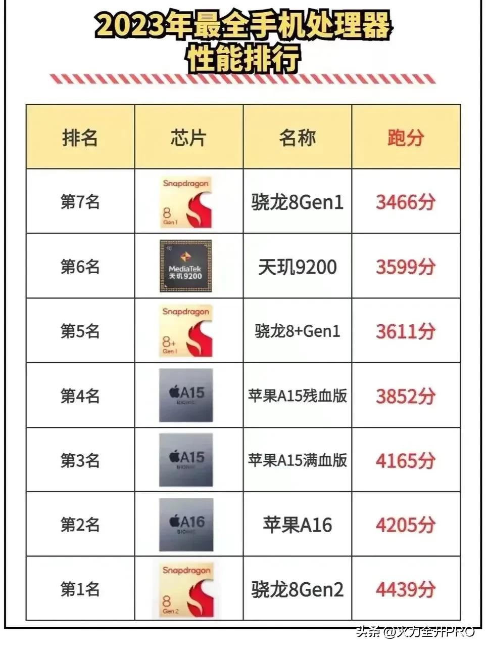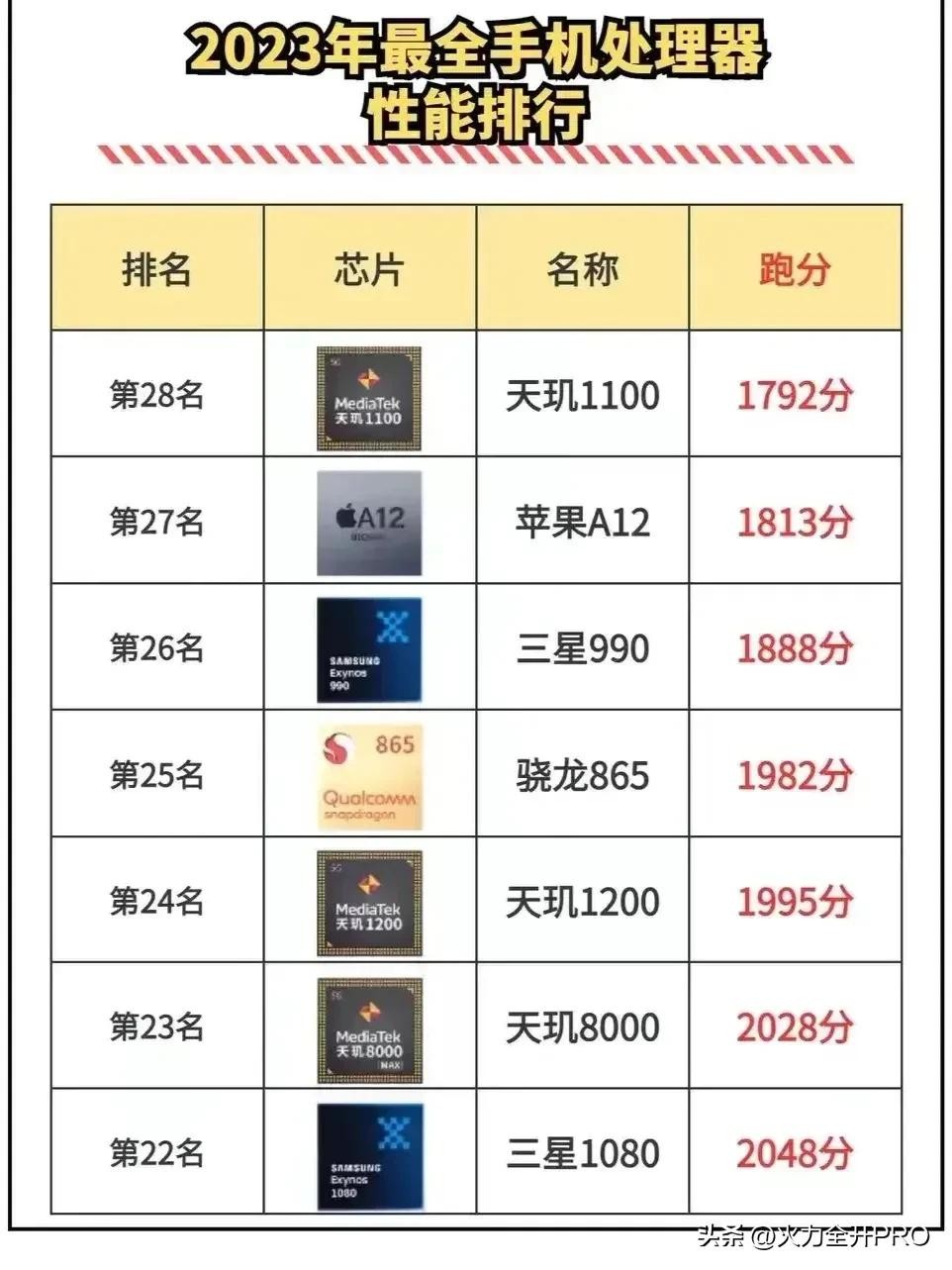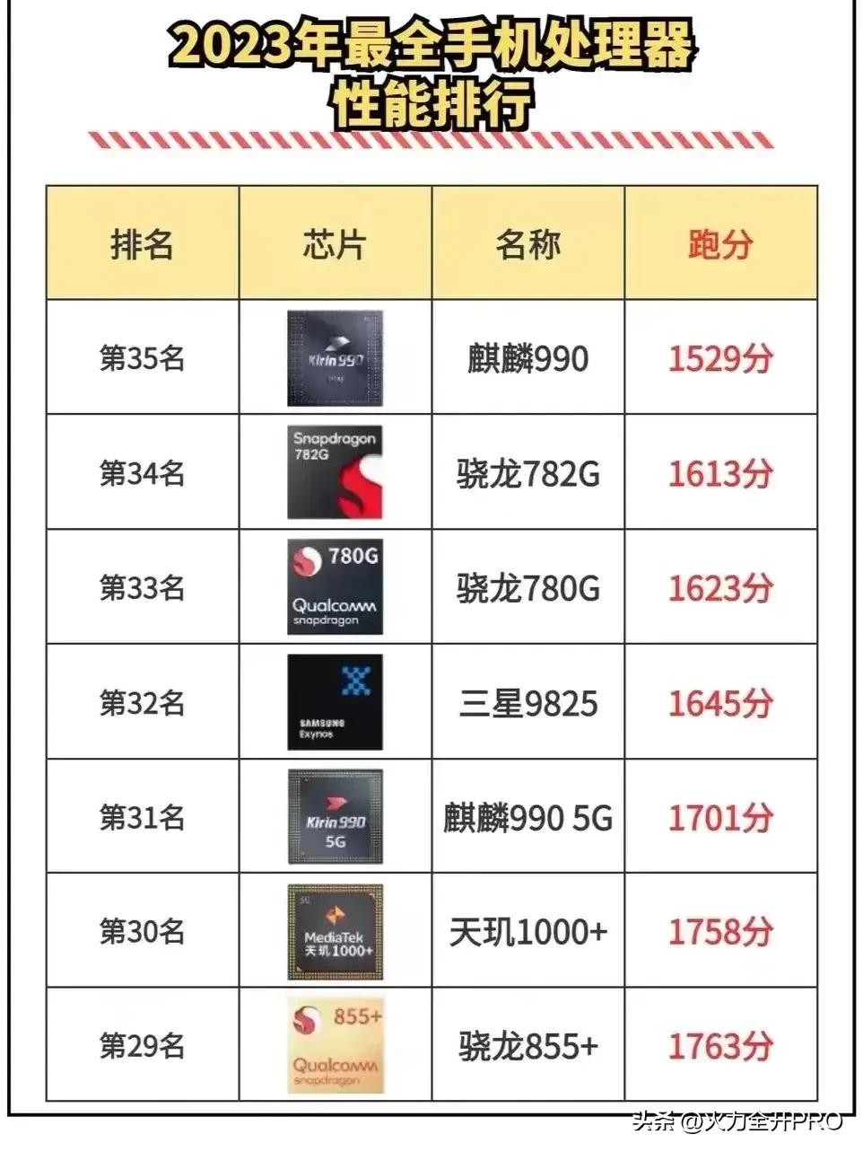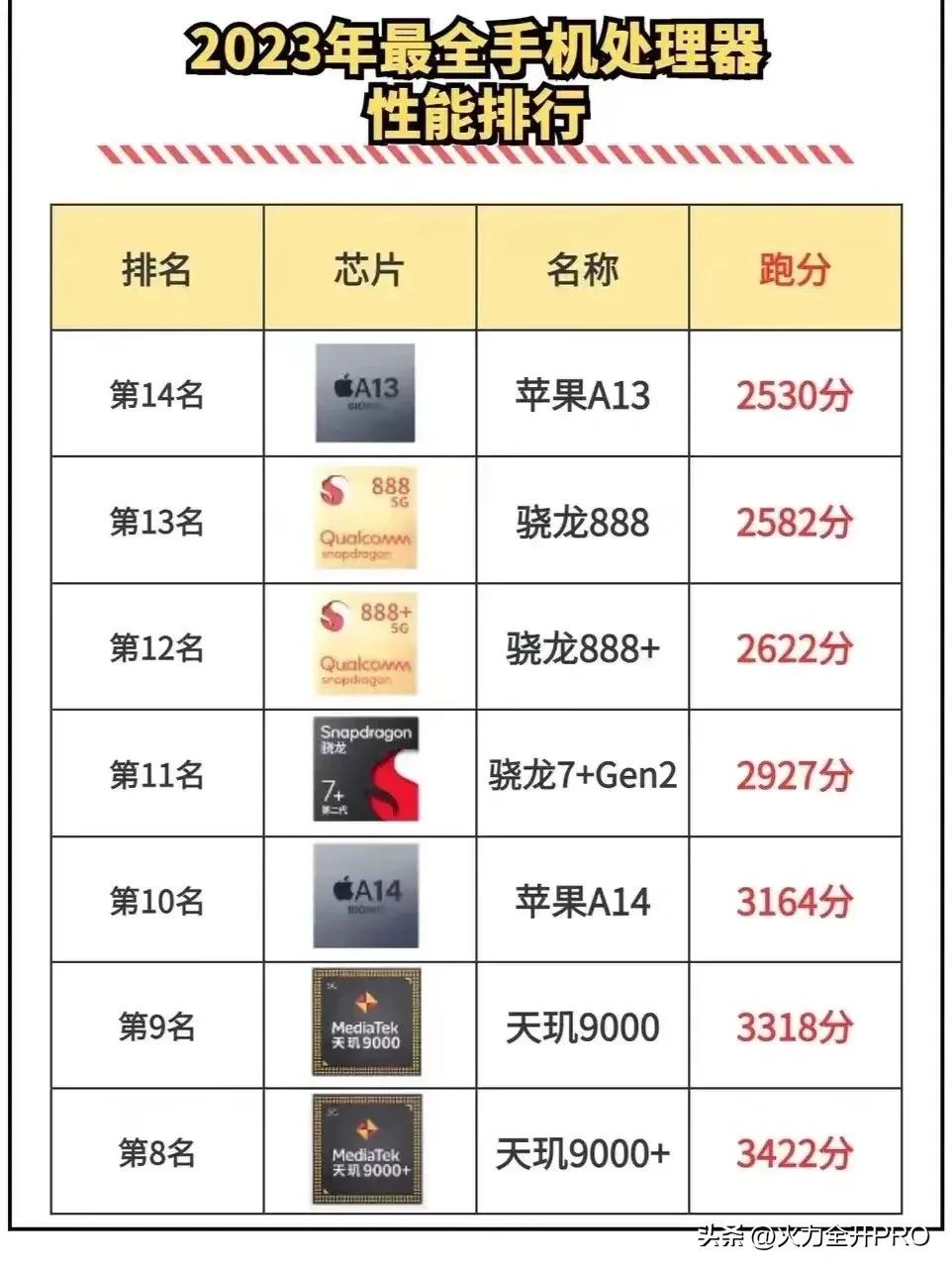 而今年最惊艳的中端芯片骁龙7+Gen2则是排名在第11位,力压骁龙888和888+