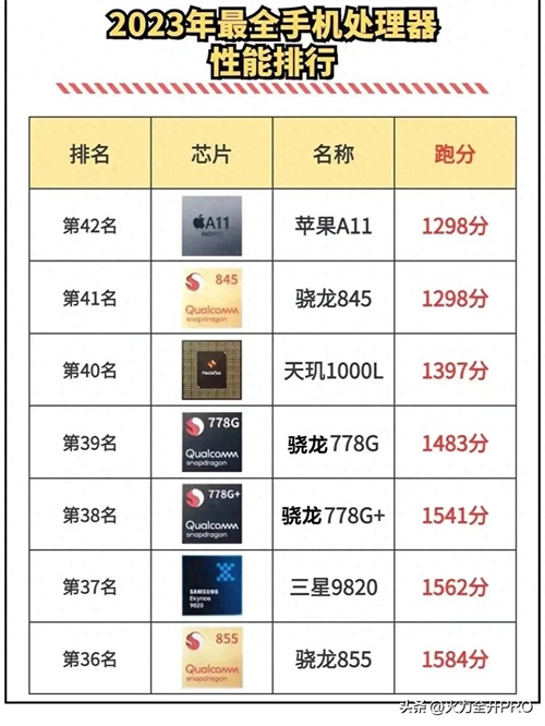 没想到苹果A11处理器已经垫底,只能排名在42位;