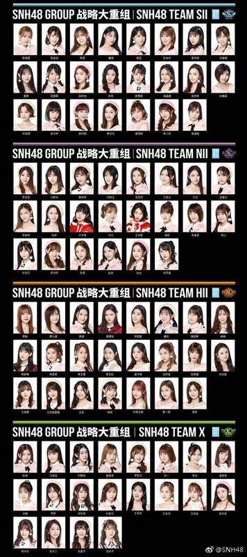 SNH48官微表示,在此次战略大重组中,将正式解散SHY48 TEAM SIII、SHY48 TEAM HIII、CKG48 TEAM C、CKG48 TEAM K、SNH48 TEAM FT五支队伍。五支队伍的现有成员,将部分移籍SNH48 GROUP其余队伍。
