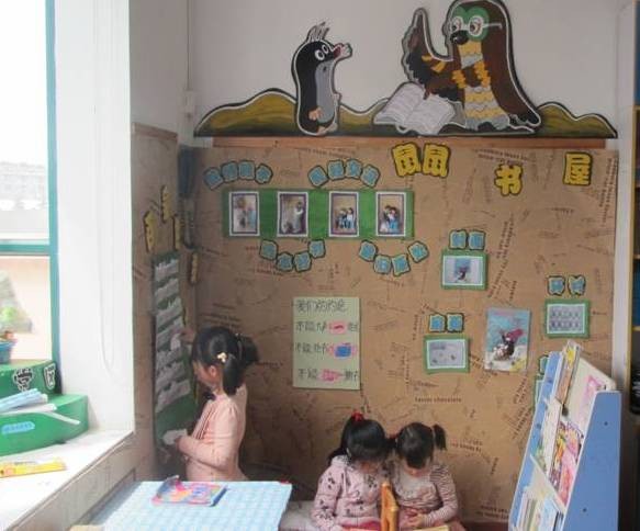 给阅读区取一个孩子们喜欢的小动物的名字,然后设置一个小粘贴墙,给孩子边看书边贴一些自己喜欢的东西,这也是很好的创意哦~