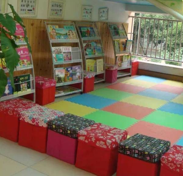 这样大的阅读区,孩子们更喜欢在这里玩耍,可以添加一些其他的装饰,使空间丰富起来,说不定更能吸引孩子们!
