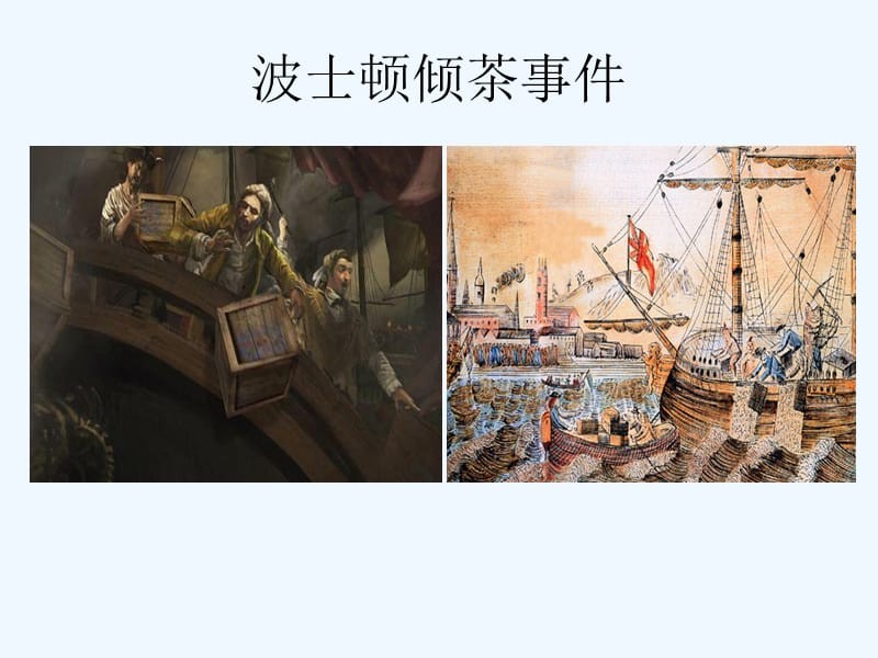 直至英国政府通过了一项立法旨在保护东印度公司而牺牲美洲船主的利益法案时,双方的冲击终于全面爆发。1773年,一群移民化装成印度人,把按照新法令的要求运到波士顿海港的三船茶叶全部倒进了海里,这就是著名的“波士顿倾茶事件”。