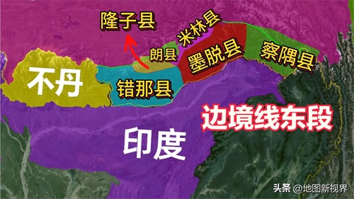 中印边境线东段主要包含藏南六县等地,此片区域的面积约9万平方公里,但目前东段已被印度非法占据超7万平方公里。