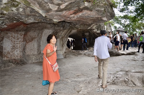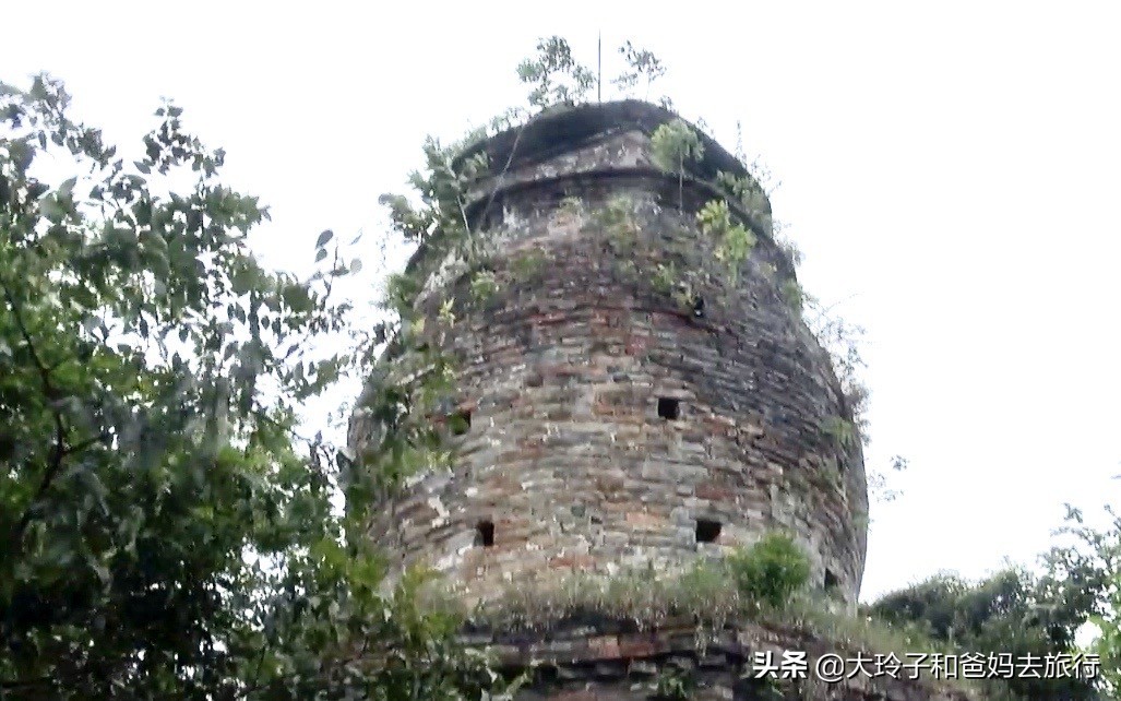 穿过象眼岩,沿着石阶而上就到了象山的山顶,这边有一座普贤塔,又叫宝瓶塔,塔高13.6米,修建于明代,可能是年久失修,外观看着非常破旧,塔身上杂草丛生,这座塔是除了峨眉山之外唯一供奉普贤菩萨的地方。传说这座塔是普贤菩萨用来镇压神象的,还有另外一种说法,这塔象征普贤菩萨骑于象背之上,因为佛教中普贤菩萨的坐骑正是一头白象。