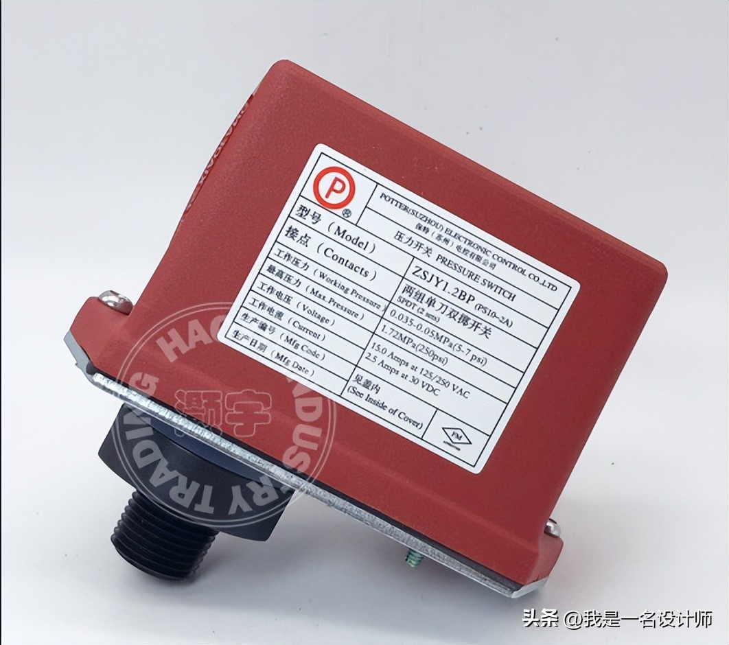 他们所使用的就是方形的,带有接线盒的压力开关,上面带的有锁母和护口