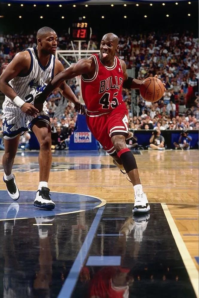 穿着AJ10打完94-95赛季最后17场常规赛,率队冲进季后赛的乔丹,在首轮中不顾品牌反对和联盟罚款,上脚了还没有发布的AJ11。