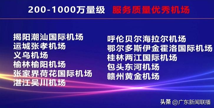 《2022年民用机场服务质量评价报告》11日正式发布,深圳宝安国际机场、珠海金湾机场、揭阳潮汕国际机场、湛江吴川机场等广东多家机场获评优秀机场。此外,广东的广州白云国际机场、惠州平潭机场等获得单项优秀机场。
