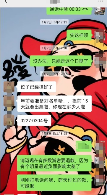 工作人员同时表示,关于赴泰国的行程不安全的说法,系旅客自己的担忧,不属于地震、战争等“不可抗力”。同时,此旅行团目的地是泰国清迈,距离所谓泰缅边境的园区比较远。另一方面,相关旅行社的路线团队都比较成熟,安全性相对可靠,“也没听过一个中国旅行团在泰国被掳走的吧”。