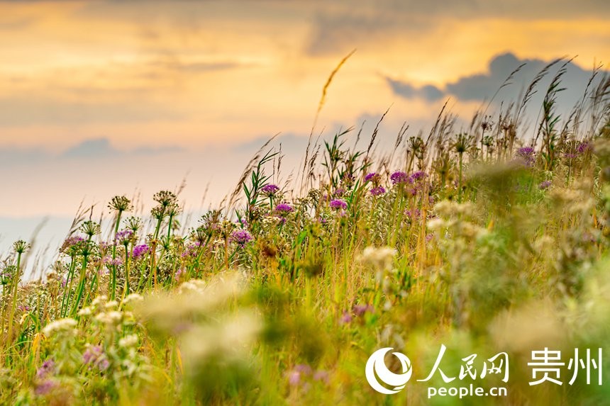 人民网毕节9月13日电(涂敏、高华、阳茜)9月12日,贵州省毕节市赫章县韭菜坪,万亩野生韭菜花在此竞相绽放,粉色的韭菜花摇曳在秋风中,吸引了四面八方的游客前来拍照留影。