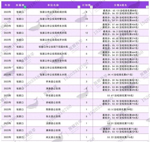具体招聘岗位分数及公安联考排名详细信息见下表: