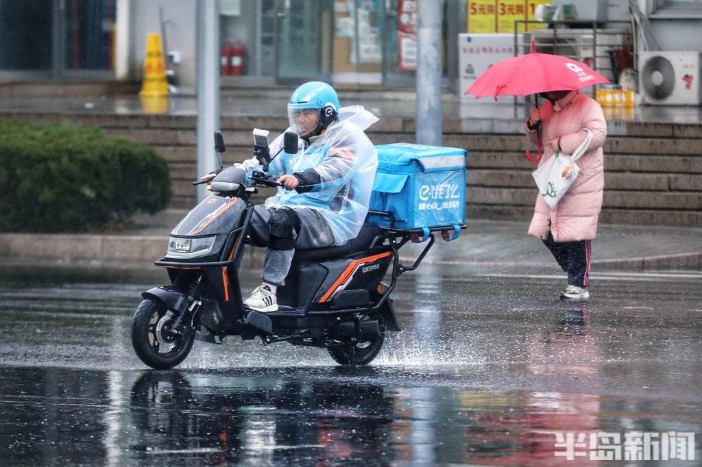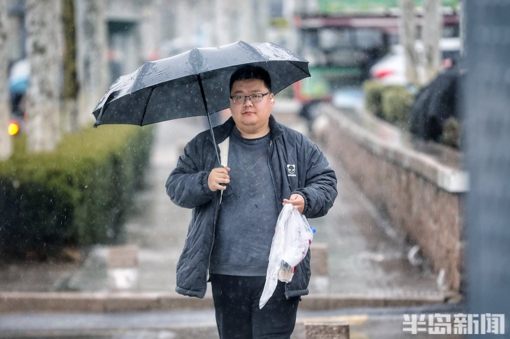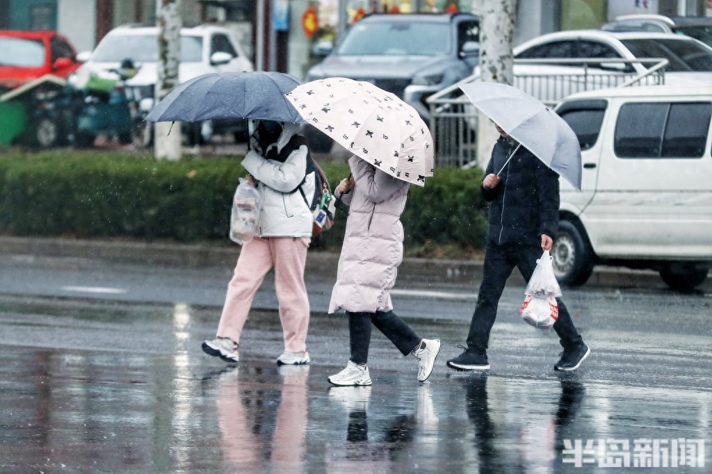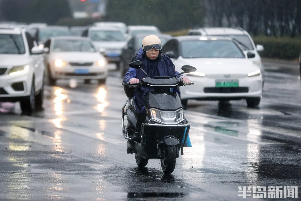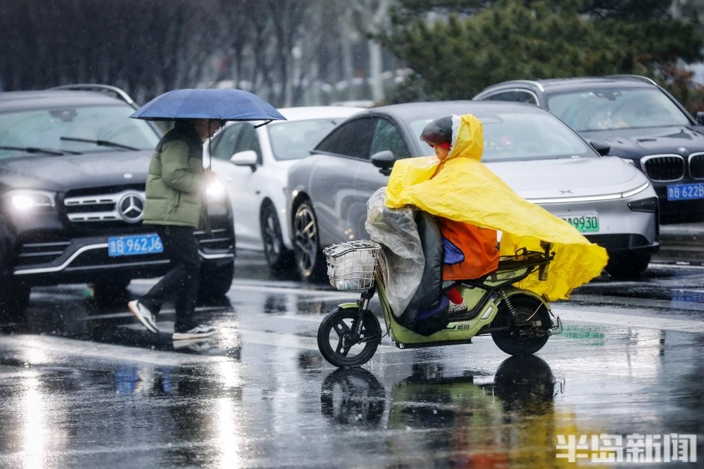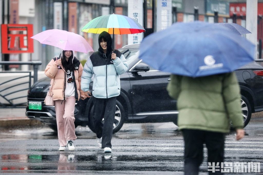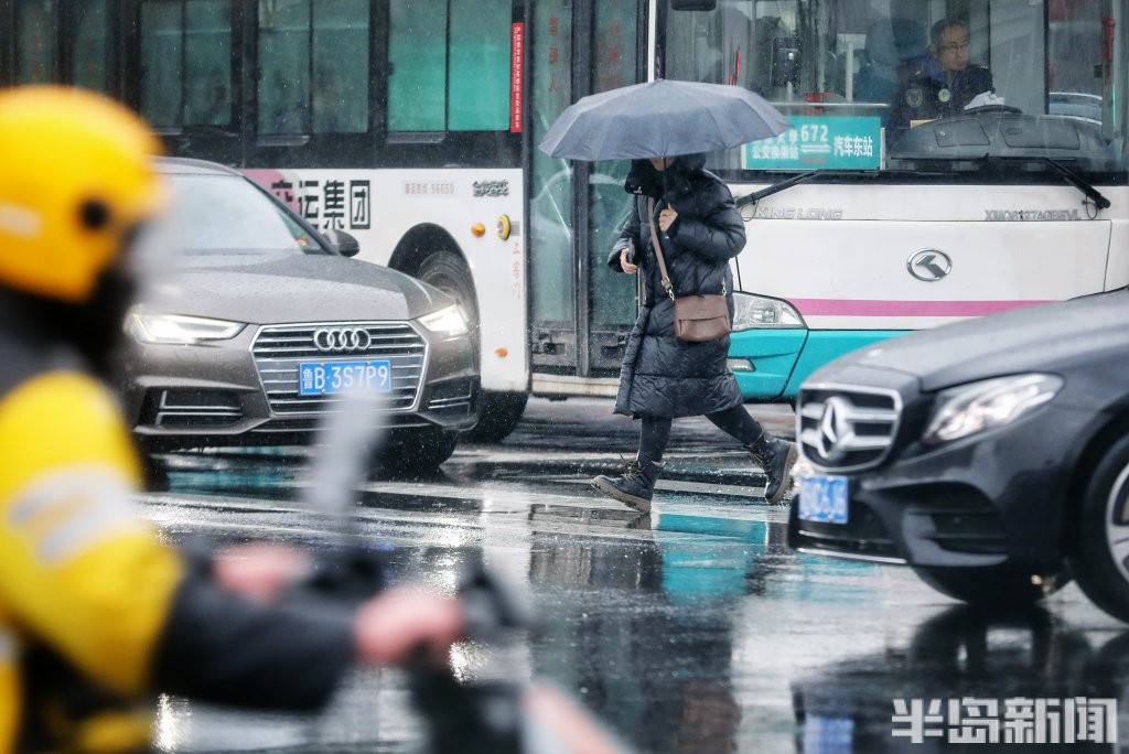 3月2日,青岛市区被雨水笼罩。正午时分,户外一度如同傍晚般昏暗,时大时小的降雨给人们生活带来很大不便。