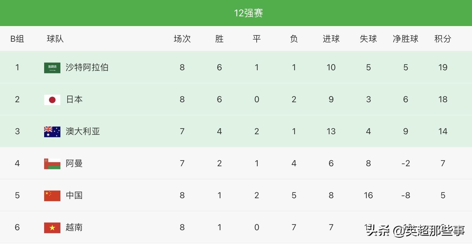 12强赛最新积分榜:中国男足输球无缘出线,日本5连胜稳居第2