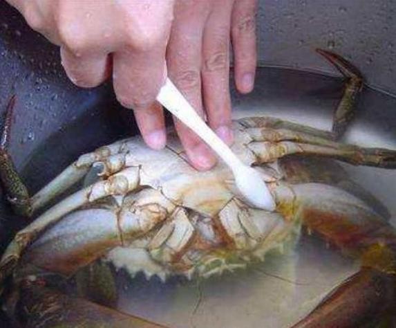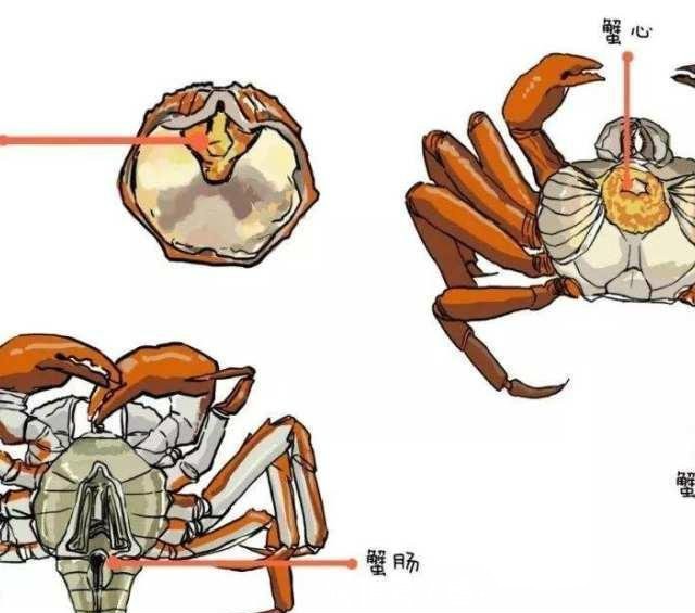 第2步、去除掉蟹腮、蟹心、蟹肠、蟹胃等不可食用的部位。