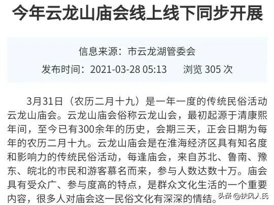 今年的云龙山庙会,从3月9日开始,连续三天,于3月11日结束。正日子是在3月10日,农历二月十九。