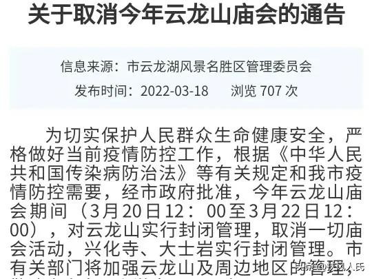 云龙山庙会传承连续300年,但也因特殊情况出现过中断。如2020年因疫情原因,云龙山庙会在历史上首次取消。2021年,同样因为防疫需要,进行预约限流。2022年,第三次受制于疫情影响,取消了云龙山庙会。
