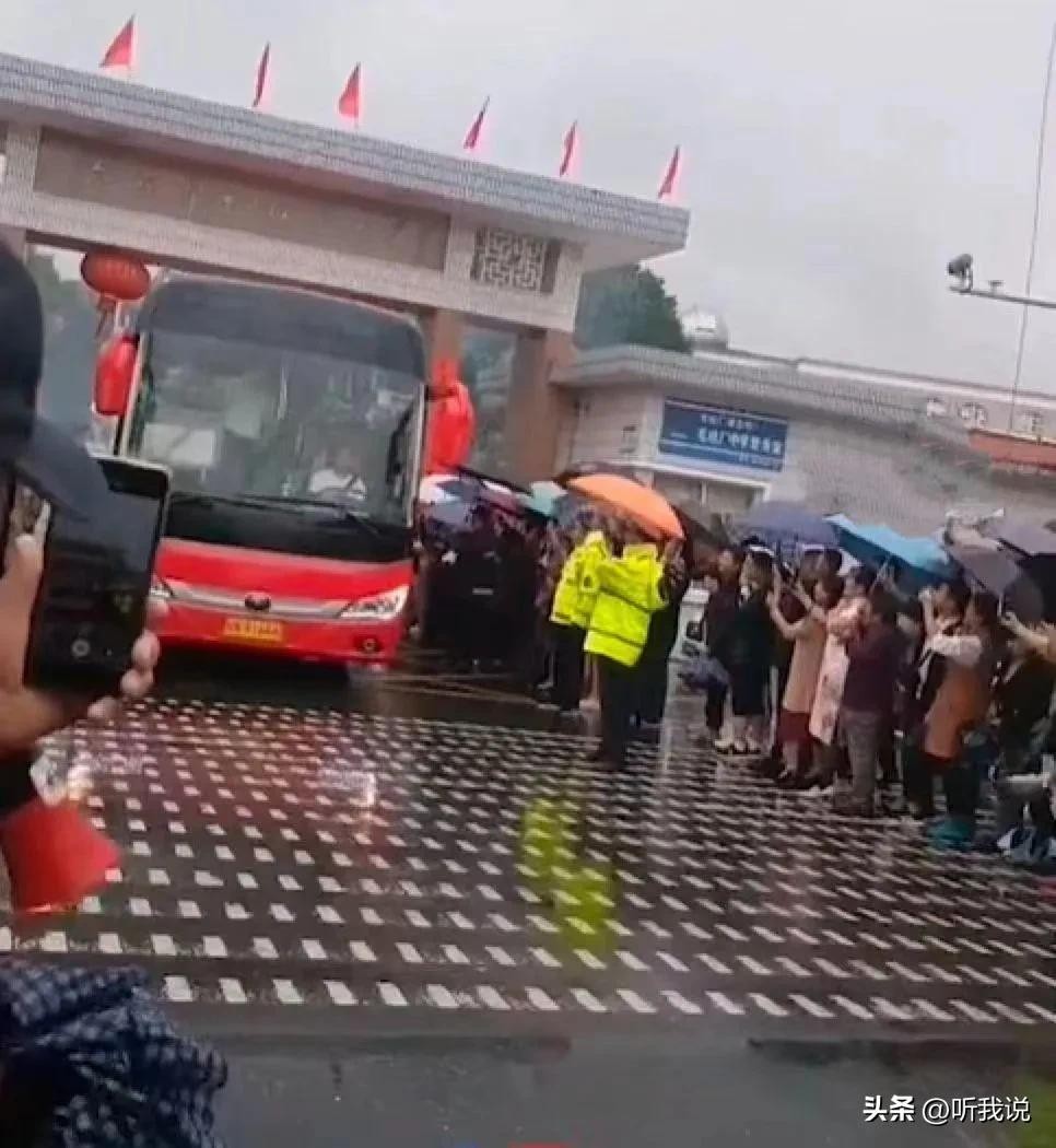 清晨,毛坦厂中学的校门口已经聚集了众多人。他们有的穿着雨衣,有的打着雨伞,但每个人的脸上都写满了期待和激动。随着时间的推移,一辆辆大巴车缓缓驶入校园,车身上贴着“金榜题名”等祝福语,显得格外醒目。