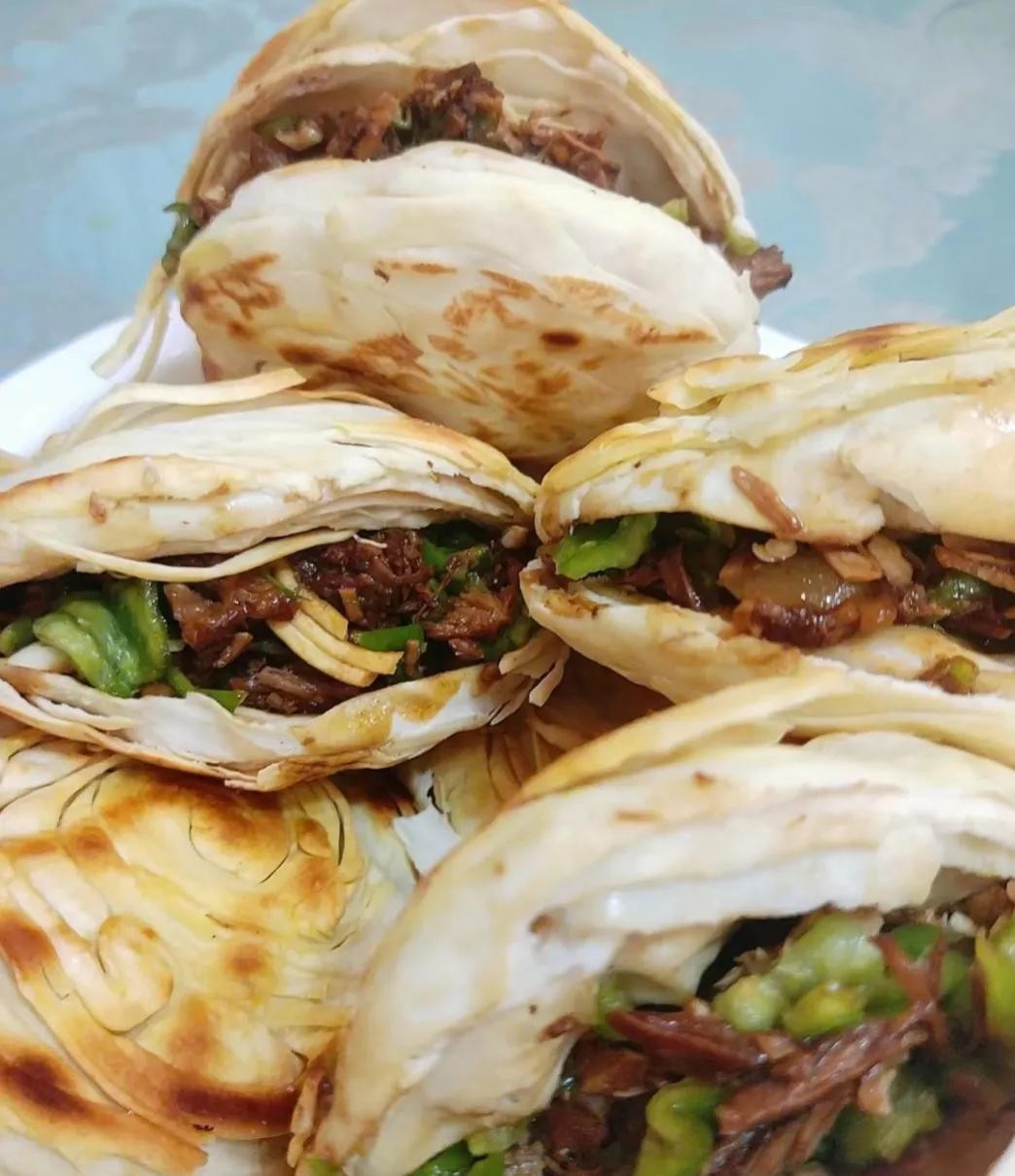 灵宝烧饼加肉:灵宝烧饼加肉估计在河南省内无人不知无人不晓吧,它不同于陕西的肉夹馍,也和潼关的肉夹馍略有区别。酥脆的饼皮配上卤好的肉再搭配上青椒蒜末 ,口感丰富,肥而不腻。非常美味!
