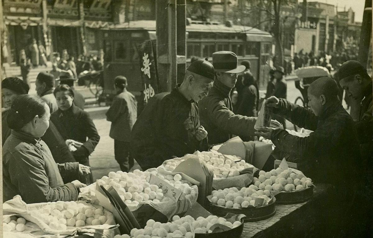 老北京的元宵节时的元宵摊。