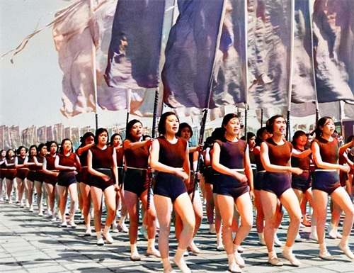 在1951年的5月1日,在北京天安门广场举行了“五一国际劳动节”盛大的庆祝活动,照片中所展示的为参加游行活动的运动员方队。