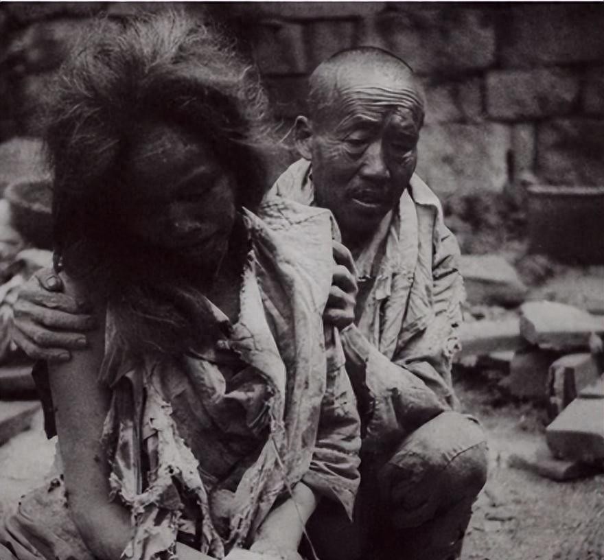 轰炸之后的老父亲扶起自己受尽凌辱的女儿。