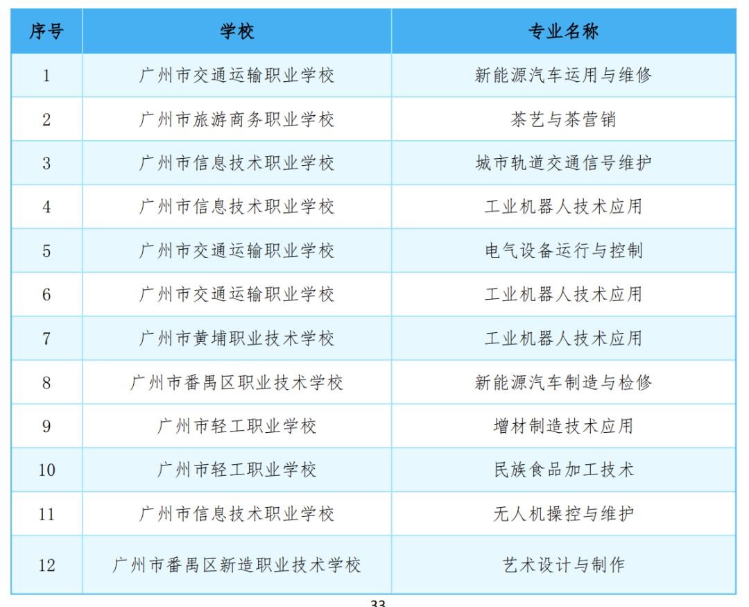 目前,中、高职学校专业已100%对接市21条重点产业链。近三年,广州市中职学校对接人工智能、智能网联与新能源汽车等重点产业,新设专业49个,停办停招专业39个,持续推动建设20个省高水平专业群、43个省“双精准”示范专业,其中第一、二批共30个省“双精准”示范专业已通过省教育厅验收。本年度,新认定12个市级示范专业,并在每个专业中对应认定1项校企合作示范项目。