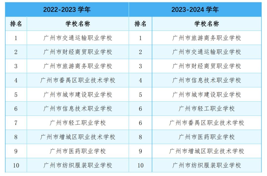 同时,广州市中职学校“强内涵、创优质”办学质量评价更加科学,切实助力各校办学质量提升。目前,2023—2024学年广州市中等职业学校“强内涵、创优质”办学质量评价结果已正式公布。