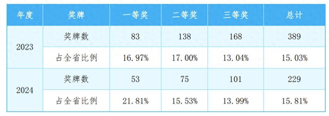 2023年9月1日至2024年8月31日的数据显示,广州市中职学校共获2024年世界职业院校技能大赛金牌8个、银牌14个、铜牌5个,获2023年全国职业院校技能大赛一等奖5个、二等奖11个、三等奖8个,获广东省职业院校技能大赛中一等奖53个、二等奖75个、三等奖101个,其中省赛成绩与上一年度相比,获奖数占全省获奖总数的比例稳中有升。