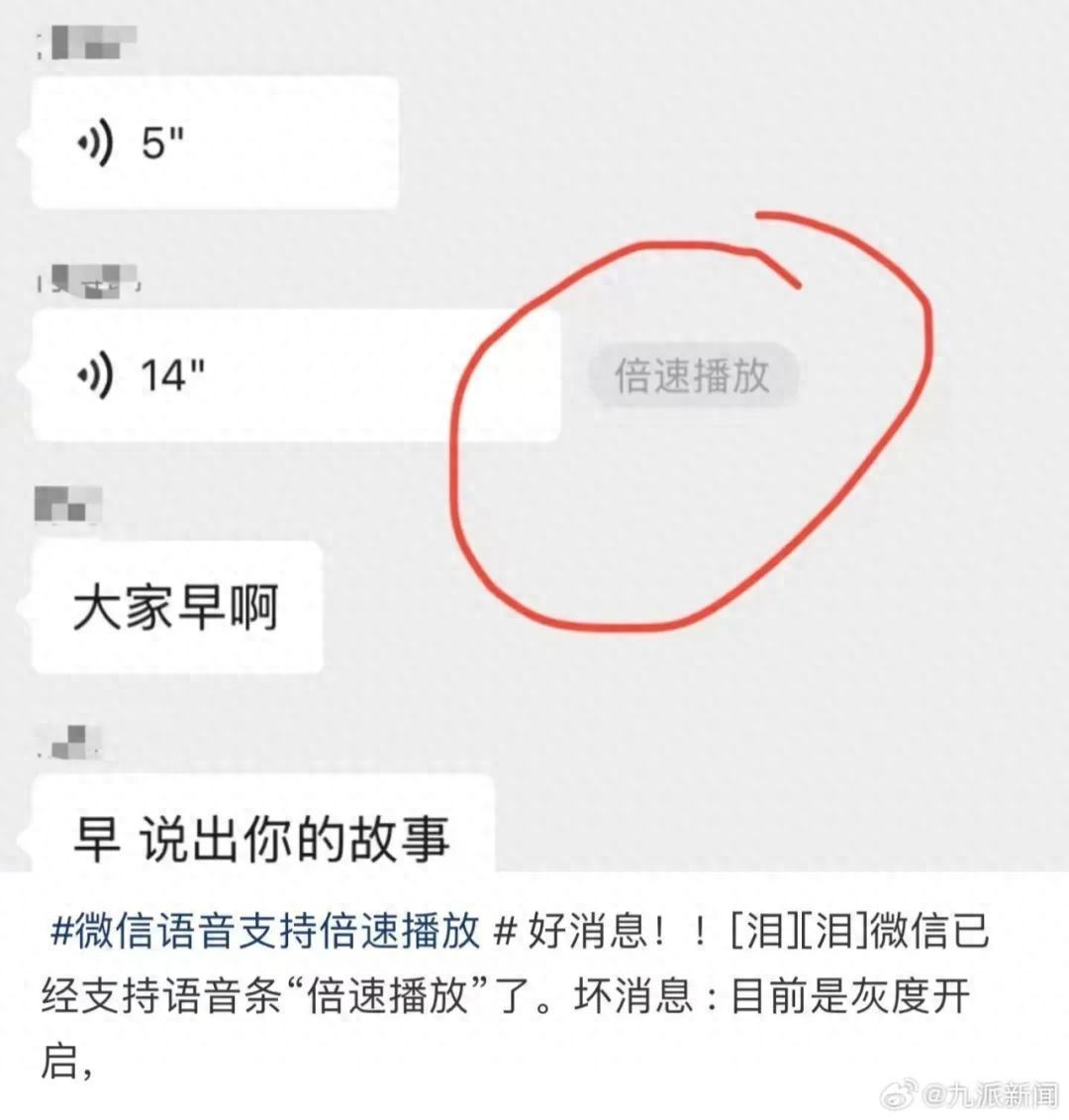 近日,有部分网友发现,微信的语音消息可以倍速播放了。