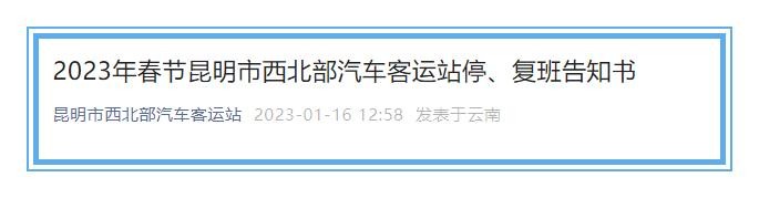 2023年春节昆明市西北部汽车客运站停、复班告知书