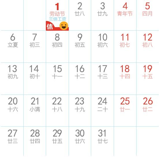 四、劳动节:5月1日放假。