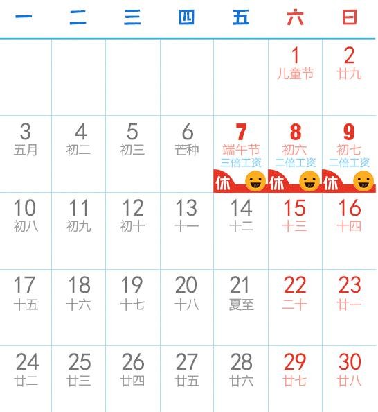 五、端午节:6月7日放假,与周末连休。
