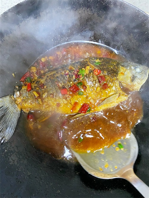 煎鱼的时候,可以在锅里撒一点盐,这样可以防止鱼粘锅,也可以增加鱼的香气。红烧鱼的汤汁是关键,要用足量的水,让鱼完全浸泡在汤汁中,这样才能让鱼更入味,也可以多留一些汤汁,拌饭吃,非常美味。如果家里没有小米辣,可以用干辣椒代替,或者不放辣椒,根据自己的口味调整。如果喜欢酸甜口的,可以在收汁的时候加一点醋,这样可以提鲜,也可以去除鱼的腥味。