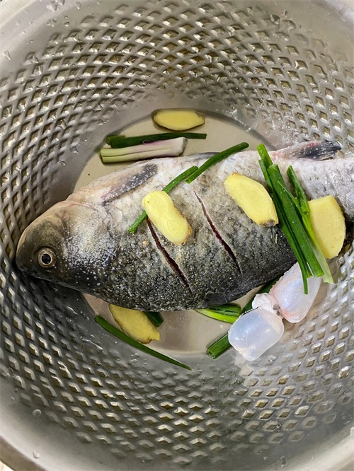 鱼洗净,用刀在鱼身两侧各划三刀,划深一些,但不要切断鱼,这样可以让鱼更容易入味,也可以让鱼更容易煎熟。在鱼身上撒一点盐,抹匀,然后用料酒腌制10分钟,去除鱼的腥味,增加鱼的鲜香。葱姜蒜切片,小米辣切段,香菜切碎,备用。