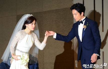 池城和李宝英在2004年出演SBS电视剧《最后之舞》结缘后,从2007年开始发展为恋人,经过6年的公开恋爱,举行了婚礼。两人在当天举行婚礼之前召开记者招待会,发表了举行婚礼的感想和今后的计划等。
