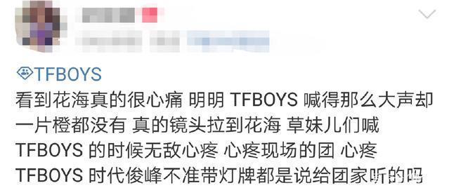 在演唱会开始之前,组合官博不断叮嘱灯牌不能带进去,现场会有应援荧光棒,但是这话似乎没有起到作用,现场还是花花绿绿的颜色,只能在各自粉丝的夹缝中看到那一点点橙色,很多粉丝都觉得组合官博说的话都是给团粉说的,因为现场全是花海,橙海特别少,果然团粉才是最听话的,做什么事都要为了三个人考虑,一切以他们三个人为主。