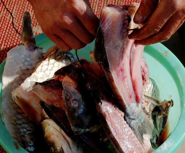 食材准备:草鱼蚊子(其他腌制的鱼也可以)10斤左右,食盐200克左右,干花椒,八角,小茴香,香叶,桂皮,纸包鱼腌鱼放什么调料,辣椒粉,高度白酒。