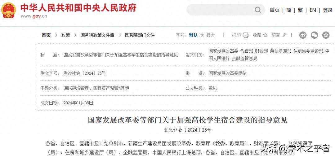 早在2024年1月,国家发展改革委、教育部等7部门就联合发布了《关于加强高校学生宿舍建设的指导意见》,鼓励高校购买或租赁周边的人才公寓、商住楼等社会房源,以弥补现有宿舍的不足。