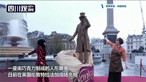 日前,一座由巧克力制成的人形雕像在英国伦敦特拉法加广场亮相。这座雕像高188厘米,重达100公斤,由一个英国艺术家和他的团队耗时五个星期精心打造。灵感来自于电影《查理和巧克力工厂》中的角色威利·旺卡。
