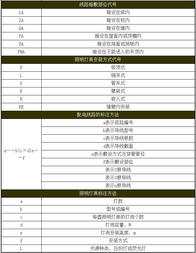 建筑电气图例中,插座的分类一般用字母来代替,比如普通插座旁多了一个字母R,则用来表示热水器插座。上图中,左边图例,右边为相对应的安装高度。上面的开关插座高度,都可以借鉴使用。