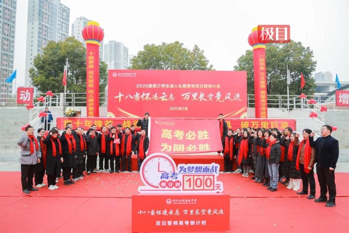 始发站:武汉为明;终点站:梦想大学;金榜题名座:211车985号……2月25日上午,武汉为明高级中学隆重举行2025届高三学生成人礼暨高考百日誓师大会。高三学子们带着学校老师和学弟学妹的祝福,穿越成人门、迈过德胜门,感恩父母、憧憬未来。