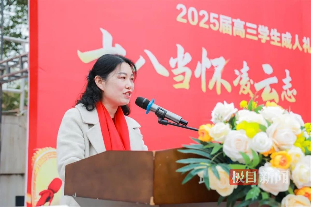 高三(1)班雷思颖同学的家长辛家娥女士作为家长代表讲话,她的言语中充满了对孩子们的关爱与鼓励:“孩子们,今天你们成年了,这意味着你们将肩负起更多的责任与使命。高考只是你们人生旅途中的一站,但请珍惜这段时光,全力以赴,为自己的梦想而战。我们永远是你们最坚强的后盾,为你们加油鼓劲!”