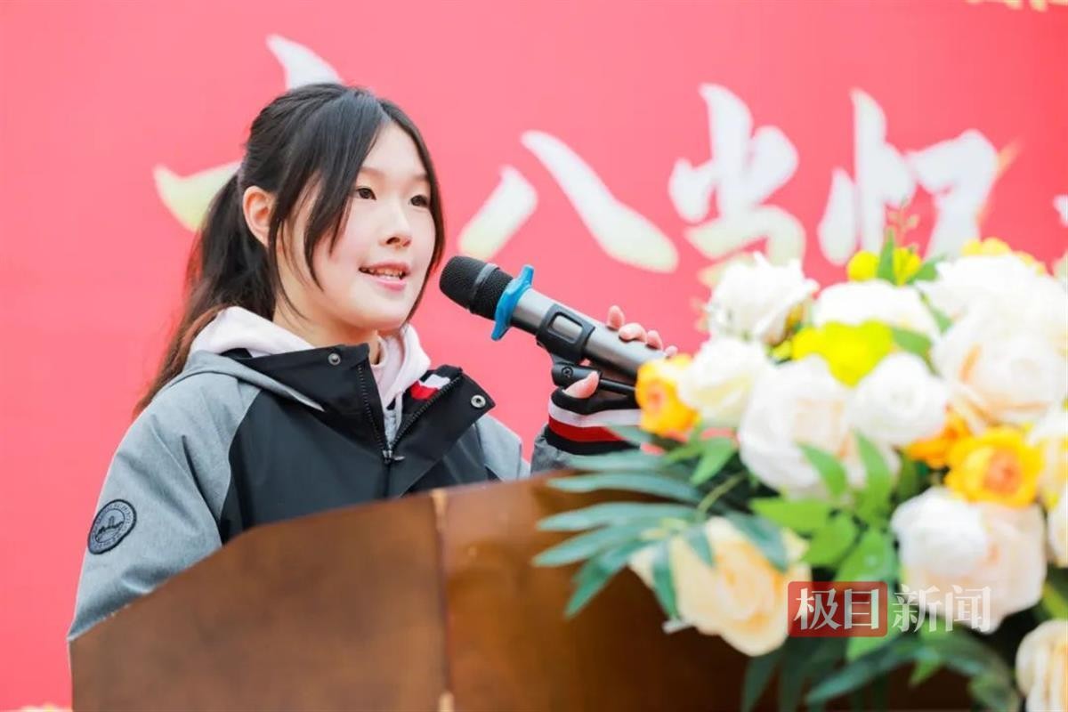 学生代表高三(10)班姜欣怡同学以激昂的语调表达了高三学子们的决心与信心:“同学们,让我们以十八岁的青春之名,向高考发起最后的冲刺!百日之后,我们定能在高考的战场上绽放光彩,为自己、为家人、为学校交上一份满意的答卷。我们怀揣凌云之志,誓要在万里长空竞风流!”