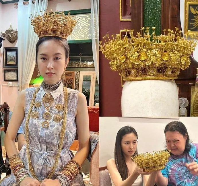 婚礼照片公布后,网友的最大关注点却不在新人身上,而是在她满身的黄金:脖子上缀满黄金项链,手上戴着数不清的黄金手镯,头上还顶着硕大的黄金皇冠...