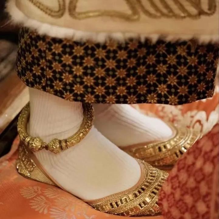 甚至连脚上都穿着金鞋,不愧是嫁给富商的“女人”啊!