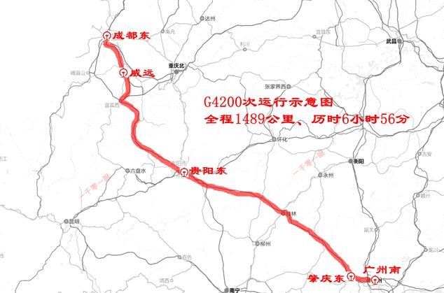 从广州南站出发,一路经过长沙南、重庆西等站,最后抵达成都东站,串起了华南和西南两大经济圈,让沿线的朋友们出行方便多了。