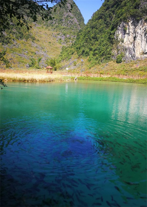 据说人们在泉边大声呼喊,引起水面震动,鲤鱼受惊便会竞相跃出水面,便是靖西著名一景“鹅泉鱼跃”。