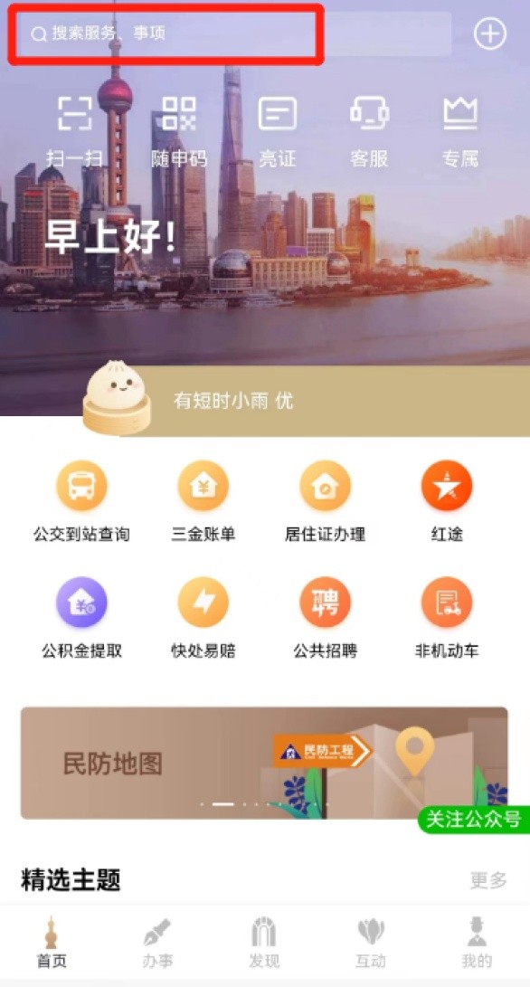 打开“随申办”APP或者