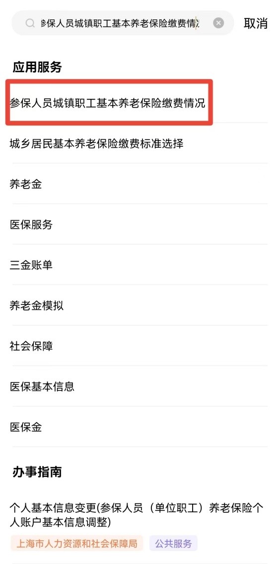 在搜索栏输入自己需要查询的社保项目